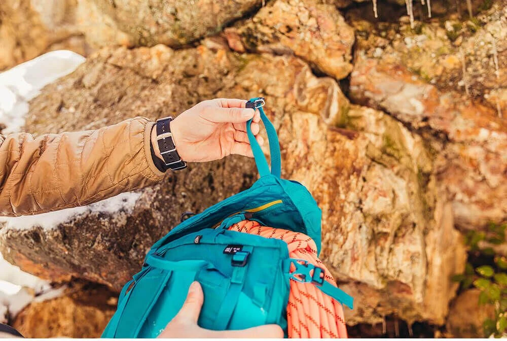 - Internal hydration system compartment with universal safety buckle for hanging and with hydration system connection
