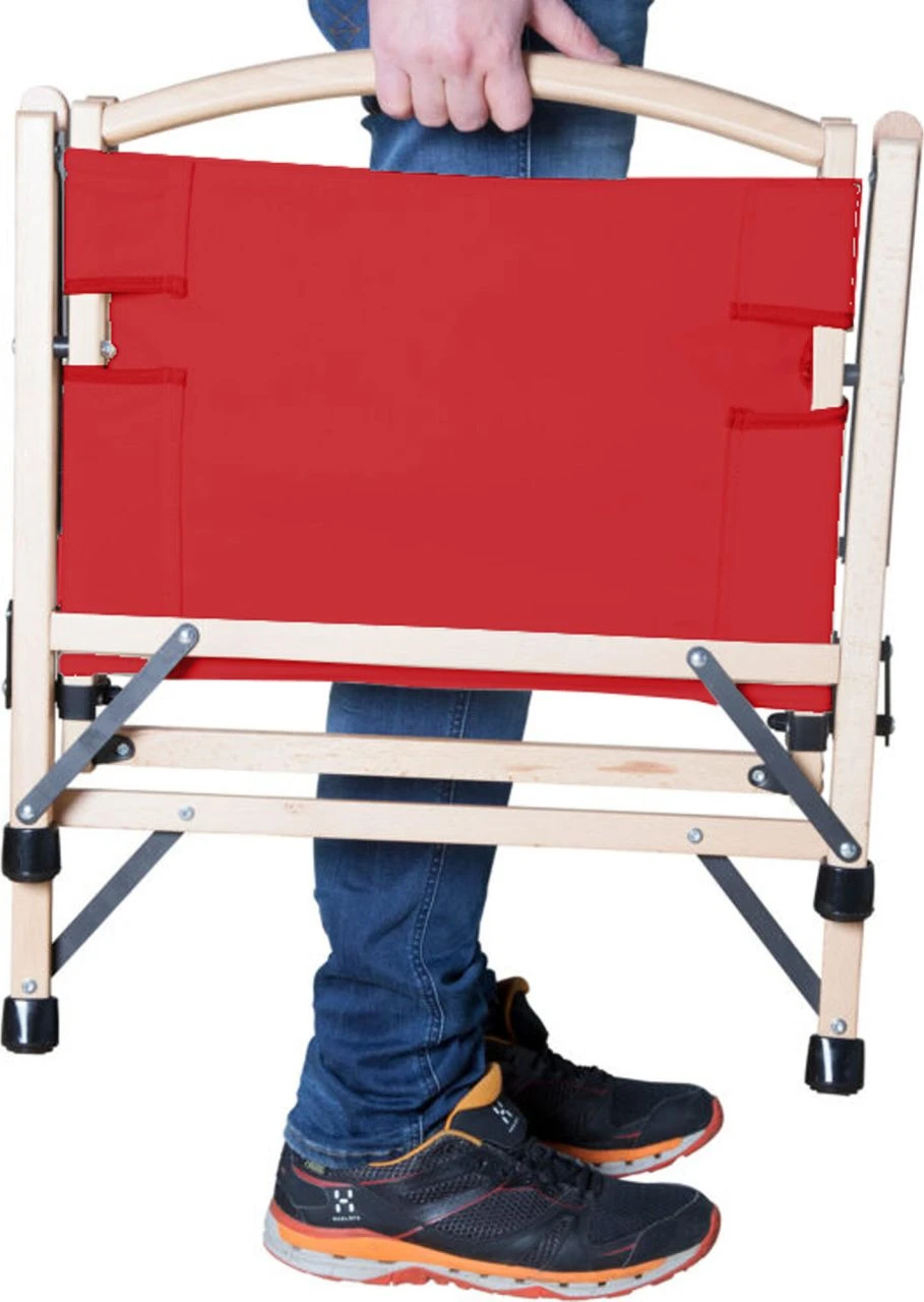 The WOODSTAR is ideal for picnics, camping or a trip to the beach. Easy to fold and supports up to 120kg. Made of clear lacquered German beech wood with 100% cotton seats available in different colours.